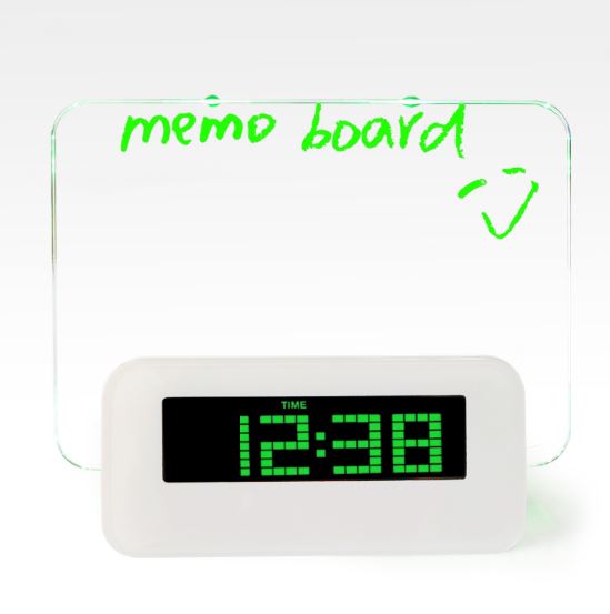 DK70 מפצל שולחני משולב שעון דיגיטלי ולוח רישום + עט מחיק להודעות, עם תאורה פנימית